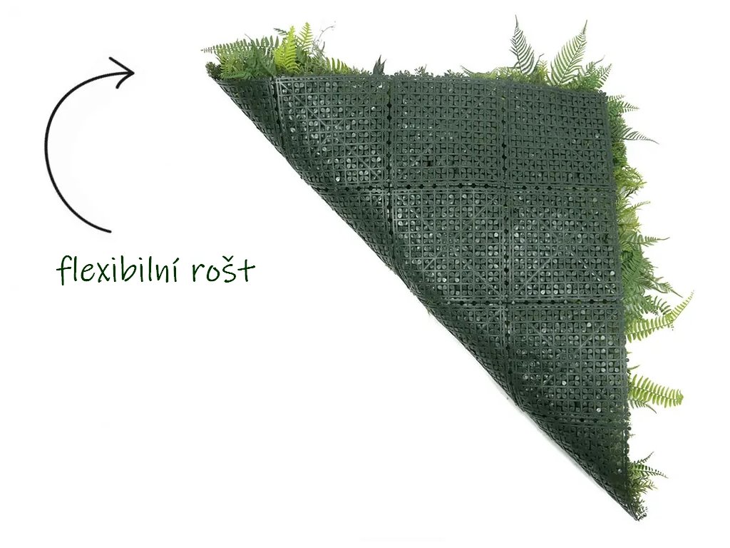 Exkluzívne rad plotov, kde nosnú kostru tvoria zelené plastové dielce s veľkosťou 100x100 cm s vnútorným jemným rastrovaním.