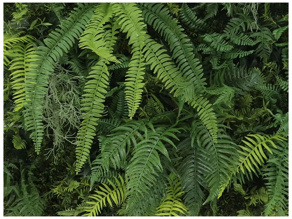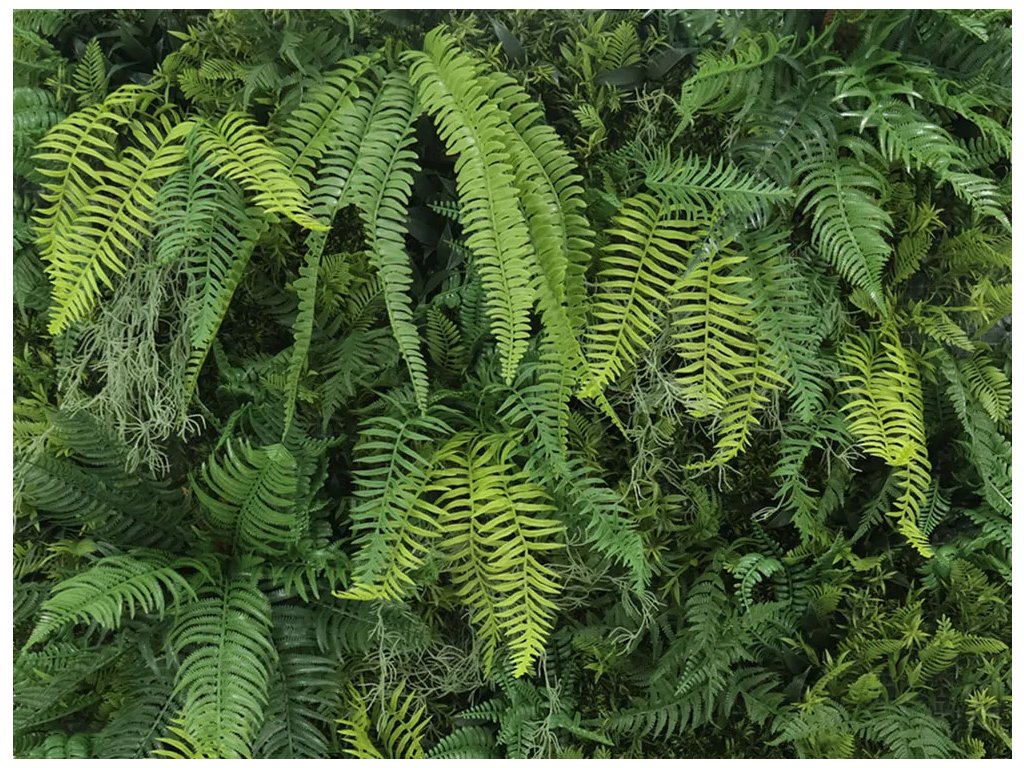 Zeleň pozostáva hlavne zo zmesi papradí v odtieňoch zelenej.