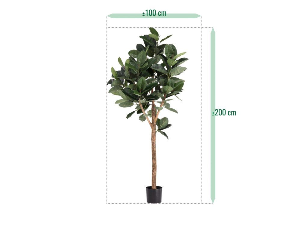 Vynikajúca imitácia fikusu s veľkými listami. Kmeň je vyrobený z prírodného dreva. Štandardne sa dodáva zasadený v plastovom kvetináči s rozmermi 20 x 18 cm.