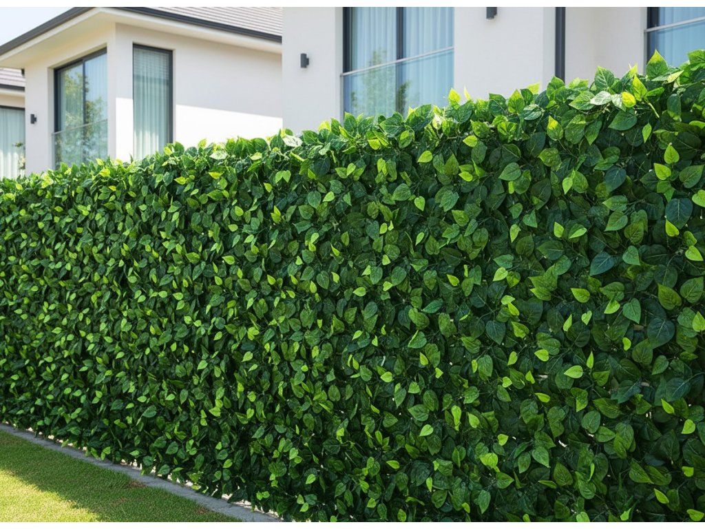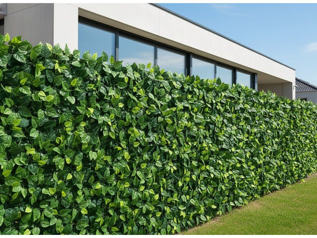 Kvalitný umelý živý plot z listov Aralie na flexibilnej plastovej mriežke.